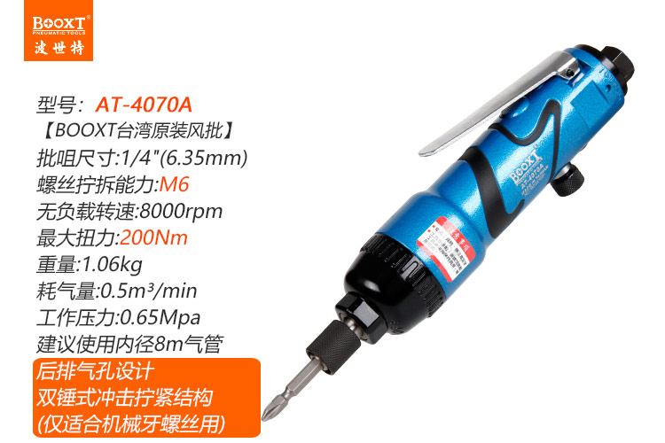 東莞市強(qiáng)勁五金工具有限公司提供臺(tái)灣BOOXT波世特品牌氣動(dòng)工具,氣動(dòng)螺絲刀AT-4070A廠家直銷,首件享特價(jià)。咨詢熱線:4008301980