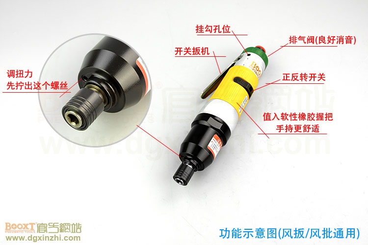 扭力氣動(dòng)扳手特點(diǎn):(重力壓鑄外殼,強(qiáng)度更高不變形,提高耐用度)