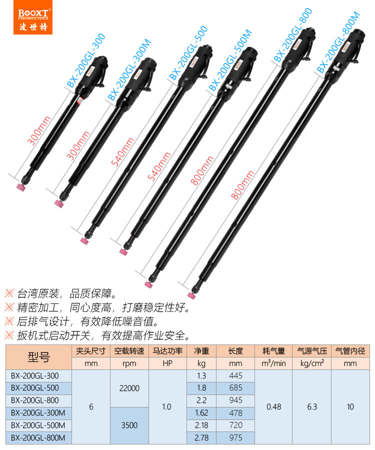 東莞市強(qiáng)勁五金工具有限公司提供臺灣BOOXT波世特品牌氣動工具,長桿氣動打磨機(jī)BX-200GL-300廠家直銷,首件享特價。咨詢熱線:4008301980