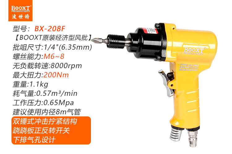 東莞市強(qiáng)勁五金工具有限公司提供臺(tái)灣BOOXT波世特品牌氣動(dòng)工具,大扭力風(fēng)批BX-208F廠家直銷,首件享特價(jià)。咨詢熱線:4008301980