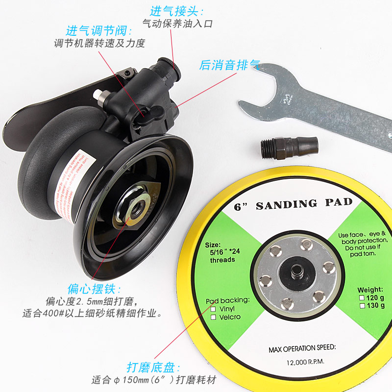 --粗磨偏心度幅度為9.5mm,扭力大,切削能力更大,適合重力打磨。工件一般幅面較大,要求打磨速度快,粗糙的打磨表面,如:玻璃鋼,UV,原子灰等材質(zhì)比較硬的工件,所用砂紙規(guī)格120#以下;