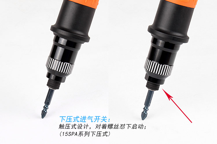 A.觸壓式(全自動(dòng)):靠風(fēng)批頭頂螺絲頭啟動(dòng),到達(dá)預(yù)設(shè)扭力自動(dòng)停止。(效率高)