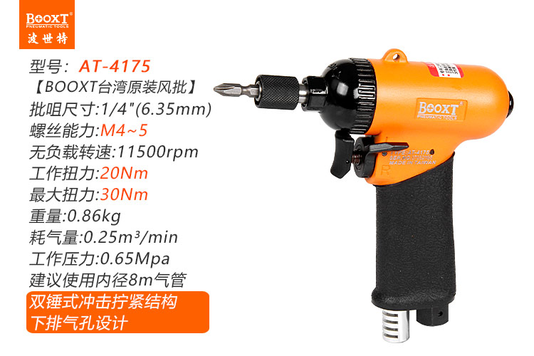 東莞市強(qiáng)勁五金工具有限公司提供臺(tái)灣BOOXT波世特品牌氣動(dòng)工具,氣動(dòng)螺絲刀AT-4175廠家直銷,首件享特價(jià)。咨詢熱線:4008301980