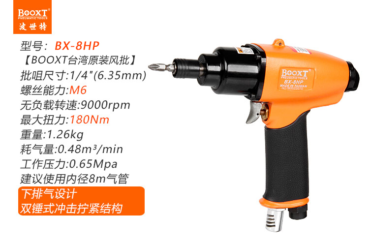 東莞市強(qiáng)勁五金工具有限公司提供臺(tái)灣BOOXT波世特品牌氣動(dòng)工具,氣動(dòng)螺絲槍BX-8HP廠家直銷,首件享特價(jià)。咨詢熱線:4008301980