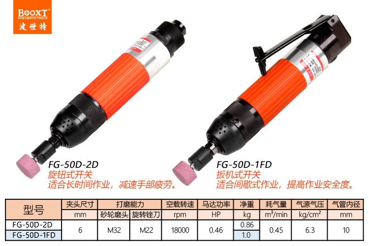 東莞市強勁五金工具有限公司提供臺灣BOOXT波世特品牌氣動工具,氣動刻磨機FG-50D-1FD廠家直銷,首件享特價。咨詢熱線:4008301980