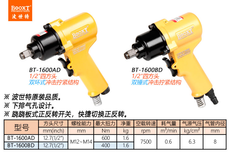 東莞市強勁五金工具有限公司提供臺灣BOOXT波世特品牌氣動工具,雙錘小風炮BT-1600BD廠家直銷,首件享特價。咨詢熱線:4008301980