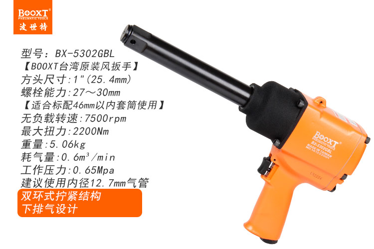 東莞市強勁五金工具有限公司提供臺灣BOOXT波世特品牌氣動工具,加長軸氣動扳手BX-5302GBL廠家直銷,首件享特價。咨詢熱線:4008301980