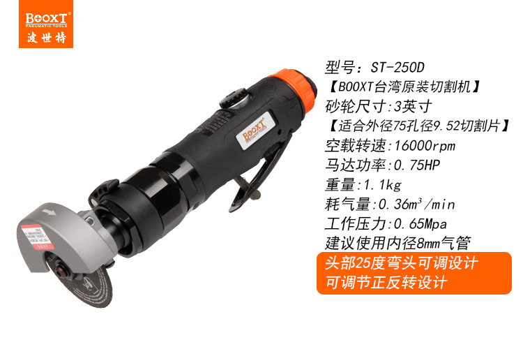 東莞市強(qiáng)勁五金工具有限公司提供臺(tái)灣BOOXT波世特品牌氣動(dòng)工具,可調(diào)角度氣動(dòng)切割機(jī)ST-250D廠家直銷,首件享特價(jià)。咨詢熱線:4008301980