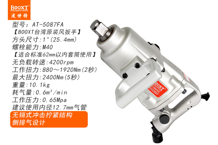 東莞市強(qiáng)勁五金工具有限公司提供臺(tái)灣BOOXT波世特品牌氣動(dòng)工具,無銷式風(fēng)炮AT-5087FA廠家直銷,首件享特價(jià)。咨詢熱線:4008301980