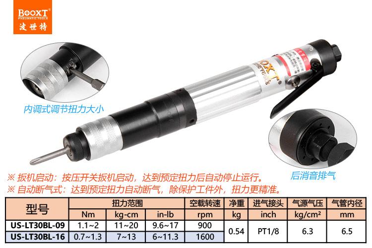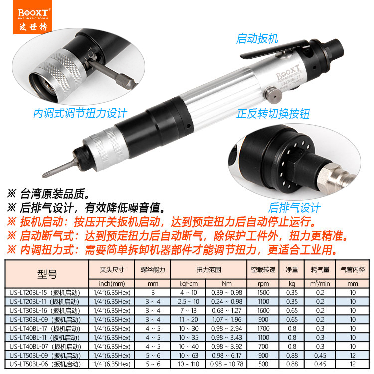 東莞強勁五金工具有限公司提供臺灣BOOXT波世特氣動工具,定扭力風(fēng)批US-LT30BL-16系列廠家直銷,首件享特價。咨詢熱線:4008301980