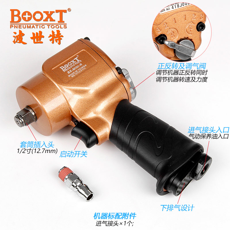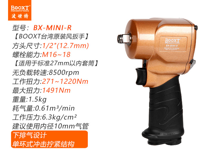 東莞市強勁五金工具有限公司提供臺灣BOOXT波世特品牌氣動工具,超短小風炮BX-MINI-R廠家直銷,首件享特價。咨詢熱線:4008301980