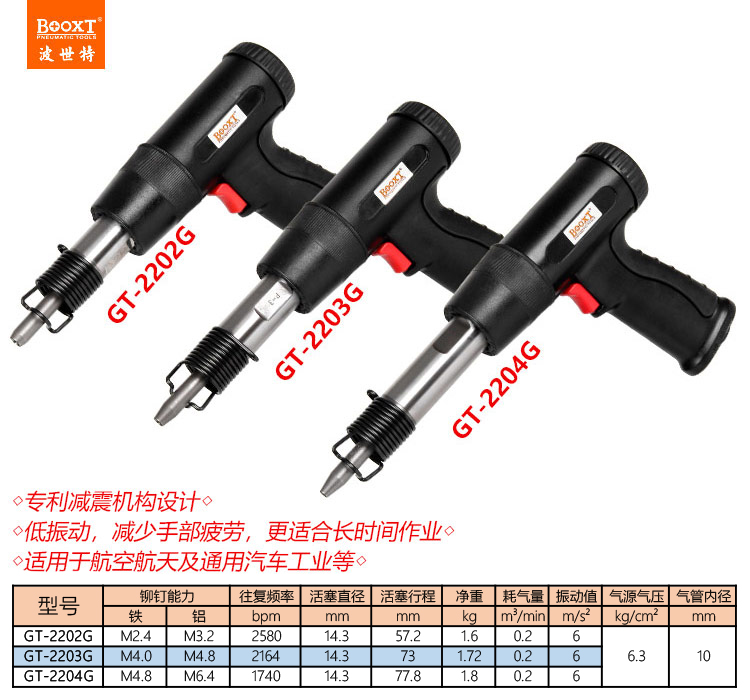 東莞市強勁五金工具有限公司提供臺灣BOOXT波世特品牌氣動工具,氣動實心鉚釘槍GT-2203G廠家直銷,首件享特價。咨詢熱線:4008301980