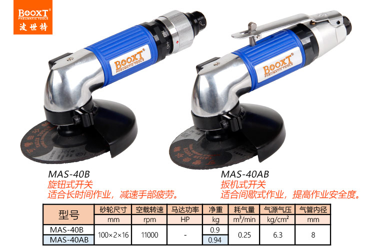 東莞市強(qiáng)勁五金工具有限公司提供臺灣BOOXT波世特品牌氣動工具,輕型風(fēng)動角磨機(jī)MAS-40AB廠家直銷,首件享特價(jià)。咨詢熱線:4008301980