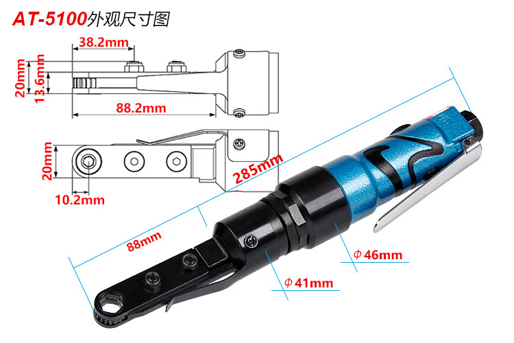 氣動穿孔棘輪扳手特點:(重力壓鑄外殼,強度更高不變形,提高耐用度)