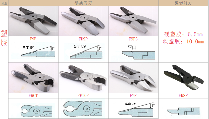 2.注意材質(zhì):材質(zhì)對選配刀刃非常重要,例如客戶要剪的銅鐵、材質(zhì)有鍍鈦、鍍烙、塑料材質(zhì)、加纖維超過20% 時,一般刀刃不是剪不斷,就是使用壽命大大減少,塑料還容易在剪斷過程中碎裂。在這情形S刀刃應選擇Z刀,塑料則建議使用電熱剪。