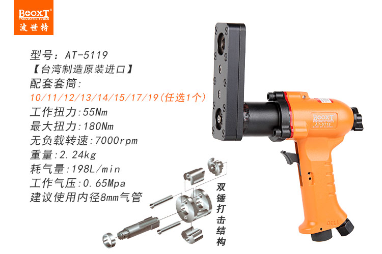 東莞市強勁五金工具有限公司提供臺灣BOOXT波世特品牌氣動工具,氣動穿孔棘輪扳手AT-5119廠家直銷,首件享特價。咨詢熱線:4008301980