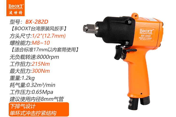 東莞市強勁五金工具有限公司提供臺灣BOOXT波世特品牌氣動工具,氣動板手BX-282D廠家直銷,首件享特價。咨詢熱線:4008301980